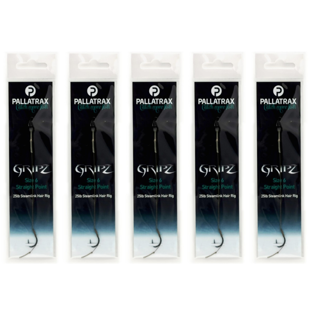 Pallatrax Gripz Straight Point Hair Rigs 8 15lb Steamlink Monofil Vorgebundener Haken