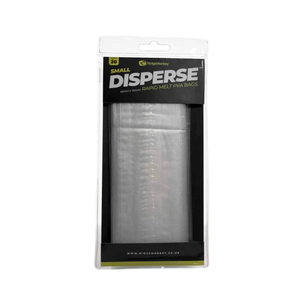 RidgeMonkey Disperse PVA Beutel – Die RidgeMonkey Disperse PVA Beutel sind eine der Neuheiten von RidgeMonkey aus dem Jahr 2020. Ihr Material besteht aus einer hochwertigen, extra starken, geprägten Folie. Sie lösen sich schnell auf und hinterlassen nur sehr minimale PVA-Reste, sodass sie auch bei vorsichtigen Karpfen keinen Verdacht erregen. Sie werden in verschiedenen Größen hergestellt und eignen sich daher sowohl für die konzentrierte Fütterung um kleinere Haken als auch für das Einbringen größerer Pellets.