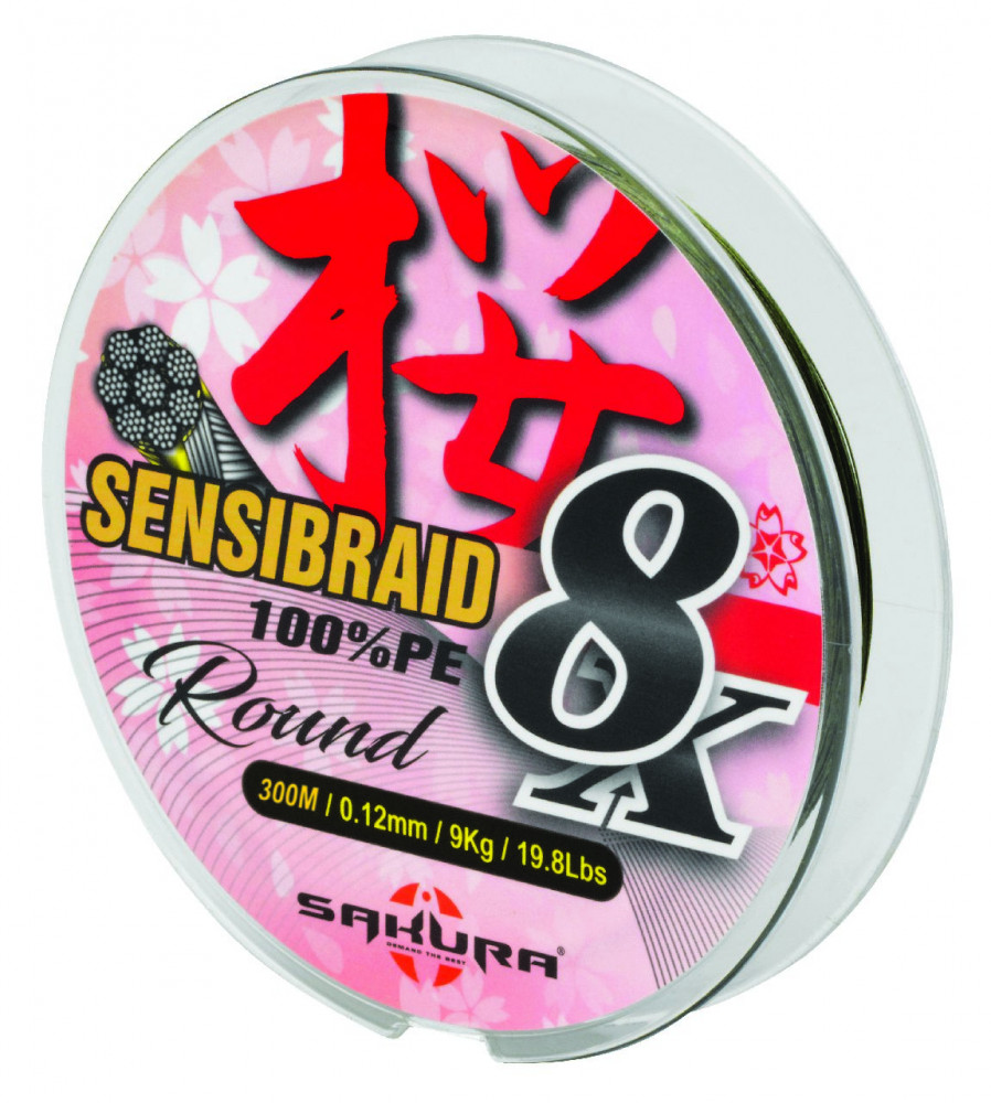 Sakura Sensibraid 8 geflochtene Schnur - GREEN 300 M - 0.12 mm / 9Kg / 19.8Lbs
