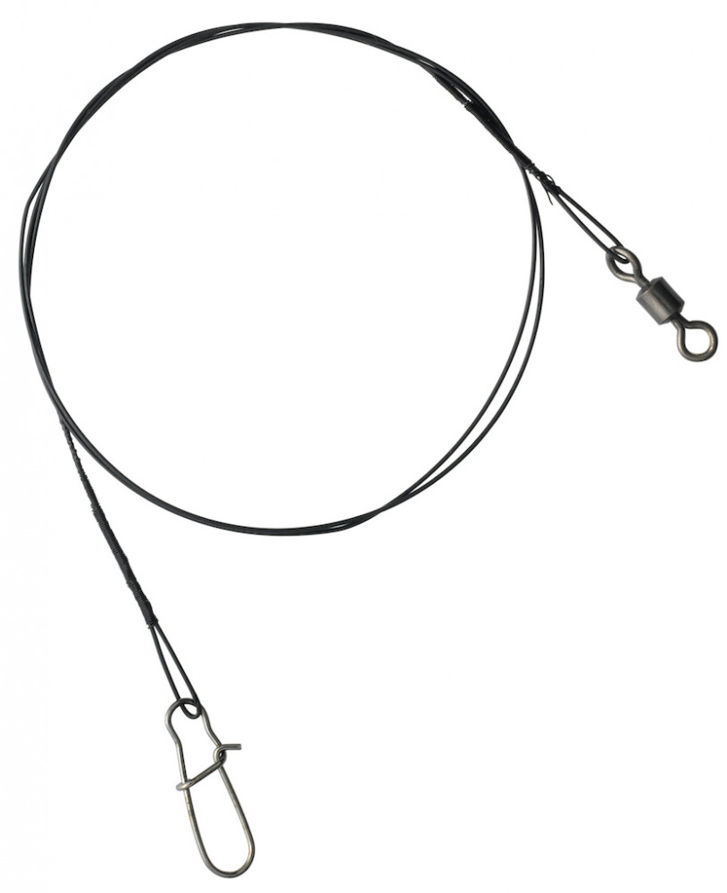 7-strängiges bissfestes Vorfach - 7-fädiges Stahlvorfach mit Wirbel und Schnappverschluss an den Enden.