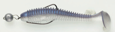 Der SWIMY GALFION FAT SHAD JIG ist ein klassischer Gummifisch mit flachem Körper, montiert mit einem Cheburashka-Kopf, der aus extrem weichem, aber gleichzeitig strapazierfähigem Material gefertigt ist. Um die Fängigkeit zu erhöhen, wurde das Material aromatisiert und sogar mit verschiedenen Attraktoren (Salz, Garnelenaroma) imprägniert, damit der Raubfisch ihn länger im Maul behält, um einen besseren Hakenbiss zu gewährleisten, bevor er den Trick bemerkt.