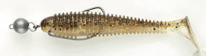 Der SWIMY GALFION FAT SHAD JIG ist ein klassischer Gummifisch mit flachem Körper, montiert mit einem Cheburashka-Kopf, der aus extrem weichem, aber gleichzeitig strapazierfähigem Material gefertigt ist. Um die Fängigkeit zu erhöhen, wurde das Material aromatisiert und sogar mit verschiedenen Attraktoren (Salz, Garnelenaroma) imprägniert, damit der Raubfisch ihn länger im Maul behält, um einen besseren Hakenbiss zu gewährleisten, bevor er den Trick bemerkt.