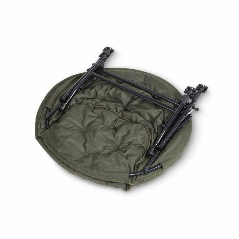 Der Indulgence Moon Chair Sessel bietet perfekten Komfort. Die verstellbaren Beine und drehbaren Schlammfüße ermöglichen die Anpassung an unebene Ufer. Die im Stuhl integrierte Netztasche bietet praktischen Platz für Schlüssel und Telefone. Die Samtmatratze und die weich gepolsterte Umrandung sorgen für zusätzlichen Komfort. Das vergrößerte Nash Camo-Muster verleiht ihm ein attraktives Aussehen. Der Indulgence Moon Chair ist der perfekte Begleiter für Angeln und Entspannung. Eine bequeme, zuverlässige Wahl für jeden Angler.