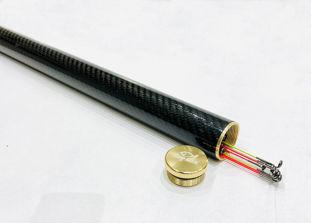 Carbon Feeder Spitzenhalter. Einzigartig und anspruchsvoll gestaltet, eine hochfeste, mehrschichtige Carbonröhre zur sicheren Aufbewahrung von Feederrutenspitzen, mit Gewinde und Metallendkappen an beiden Enden.