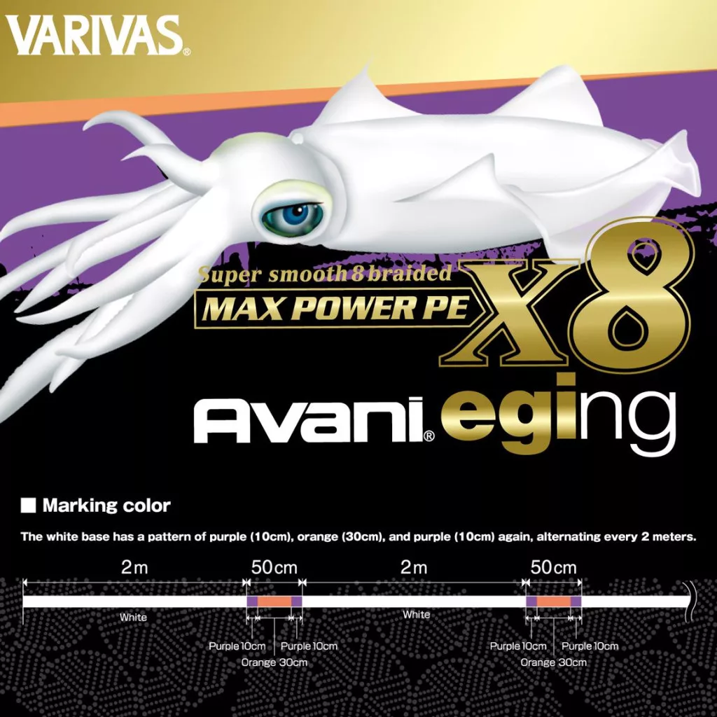 Varivas Avani Eging Max Power PE X8 150m #1,0 20,2lb White Orange Marking Geflochtene Hauptschnur
