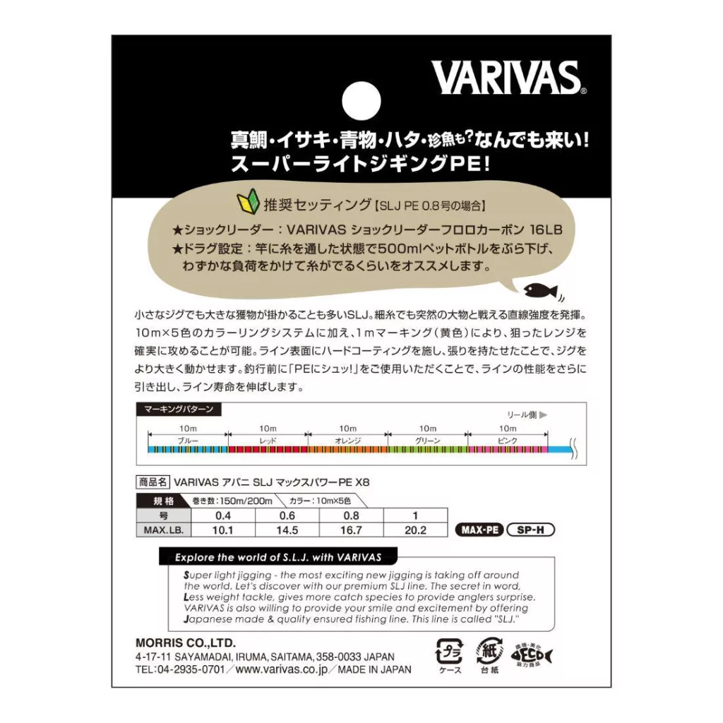Varivas Avani SLJ Super Light Jigging Max Power PE X8 150m #1,0 20,2lb Geflochtene Hauptschnur