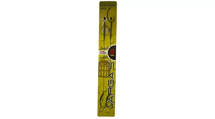 Inhalt der Packung:Vargas Curv Shank SR.8 2 Öhr, mit Widerhaken Geflochtenes 20cm Vorgebundener Haken 2Stk