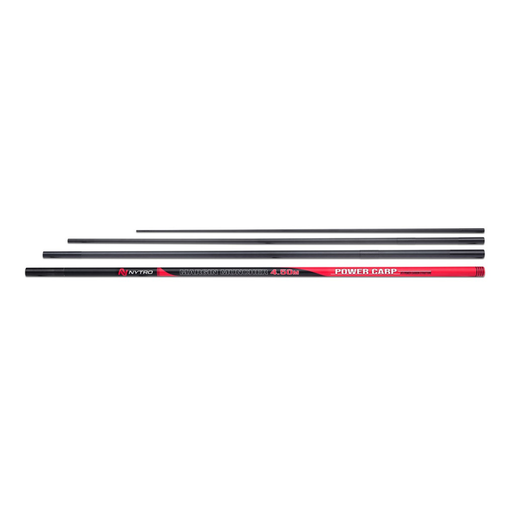 Die Nytro Margin Muncher 4,5m ist eine extrem starke Kopfrute, die sich perfekt zum Fang der größten Karpfen eignet, besonders an Pay-Lakes und großen Fischteichen. Diese bombensicheren Kopfruten verfügen über eine progressive Aktion und sind für starke Gummis ausgelegt, was sie ideal für den schnellen Fang großer Fische macht. Die Margin Muncher wird mit einer vormontierten PTFE-Spitze, einem "Winder Bung" und einem Auslöseschlüssel geliefert. Das zweite Segment ist mit einer zusätzlichen Carbonverstärkung versehen, um die Installation eines Puller-Slots zu ermöglichen.