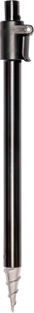 Der Körper des Banksticks besteht aus starkem, korrosionsbeständigem Aluminium, das den Witterungseinflüssen, Feuchtigkeit und den beim Angeln auftretenden Verunreinigungen standhält. Die Schraubspitze ist ebenfalls aus einer langlebigen Metalllegierung gefertigt, die sich auch bei Verwendung in härterem Boden nicht verformt. Das geriffelte Design unterstützt die stabile Befestigung und verhindert ein Verrutschen der Rute.
